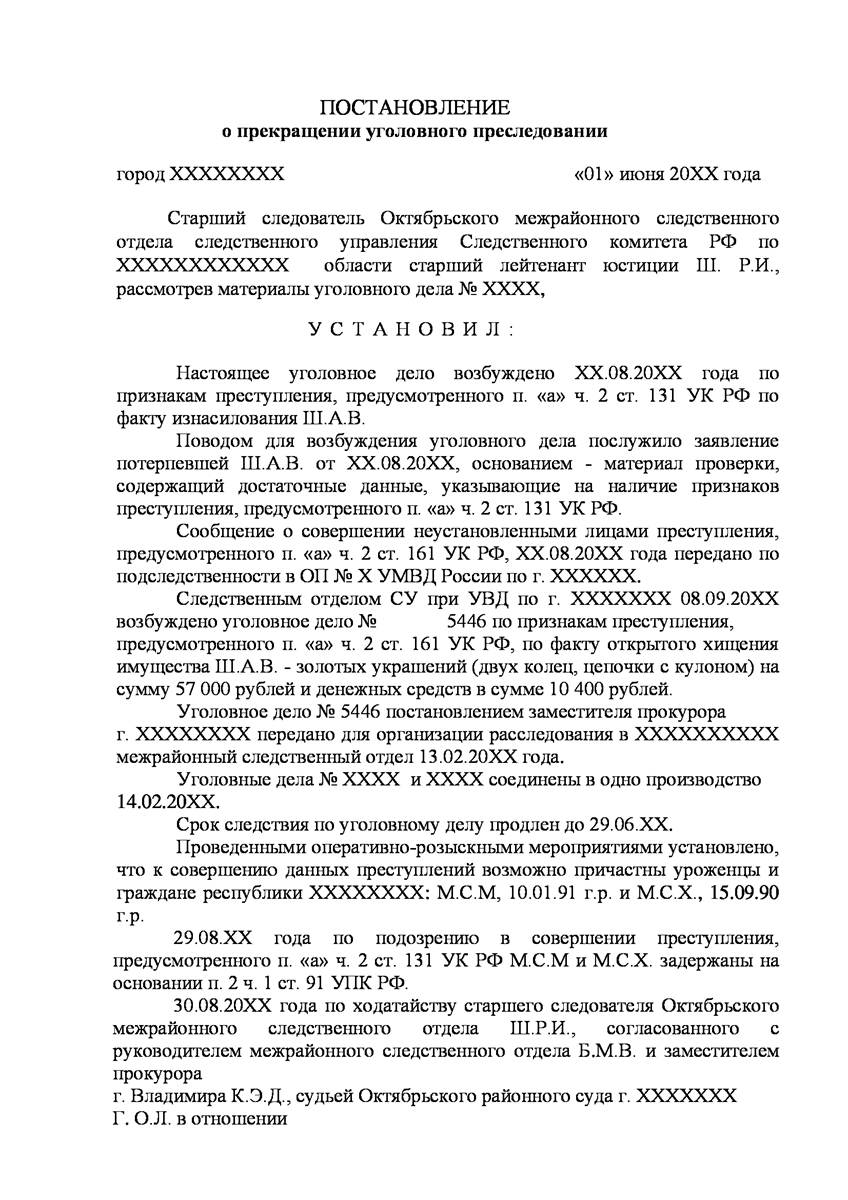 Адвокат в Казани добился прекращения уголовного дела на стадии предварительного расследования по реабилитирующим основаниям в отношении двух граждан иностранного государства обвиняемых органами предварительно следствия в совершении преступления предусмотренного п. «а» ч.2 ст.131 УК РФ (изнасилование совершенное группой лиц) и п."а" , п."г" ч.2 ст.161 УК РФ (грабёж), наказание за которое предусматривает лишение свободы от восьми до пятнадцати лет, то есть преступление, которое в соответствии с ч.5 ст.15 Уголовного Кодекса Российской Федерации отнесено к категории особо тяжких преступлений.